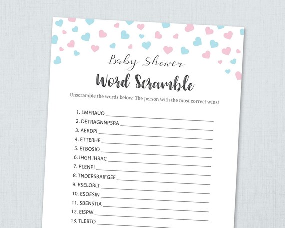 Word Scramble Game Printable Boy Baby Shower Games Confetti Etsy