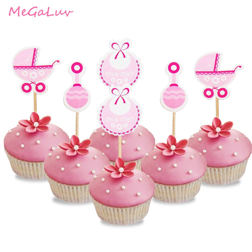 18pcs Baby Shower Decor Cupcake Topper Its Boy Girls Blue Pink