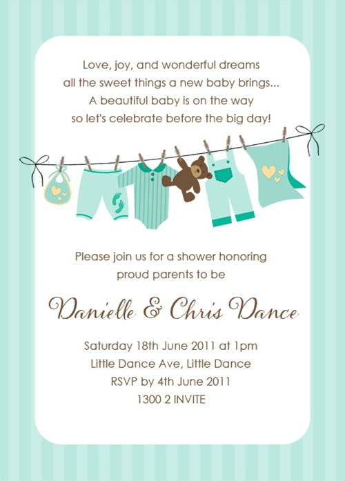 Green Baby Shower Invitations Gender Neutral Baby Clothes On The