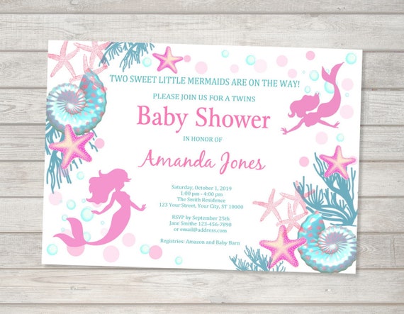 Mermaid Twins Baby Shower Invitation Twin Girls Mermaid Under The