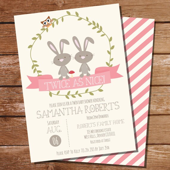 Twin Bunny Baby Shower Invitation For Twin Girls Instant