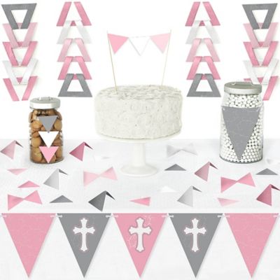 Little Miracle Girl Pink Gray Cross Diy Pennant Banner