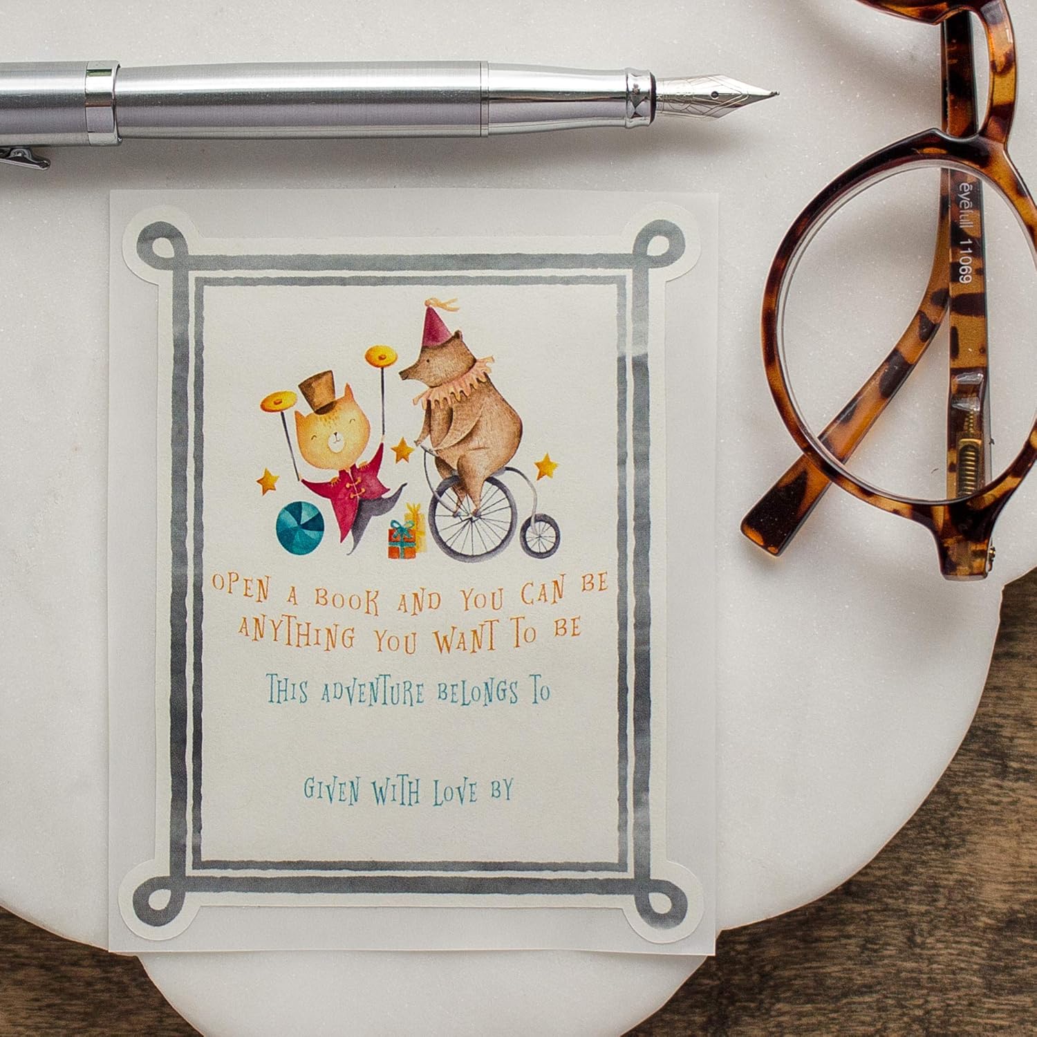 Amazon Com Baby Shower Bookplate Stickers Circus Cat Book Plate