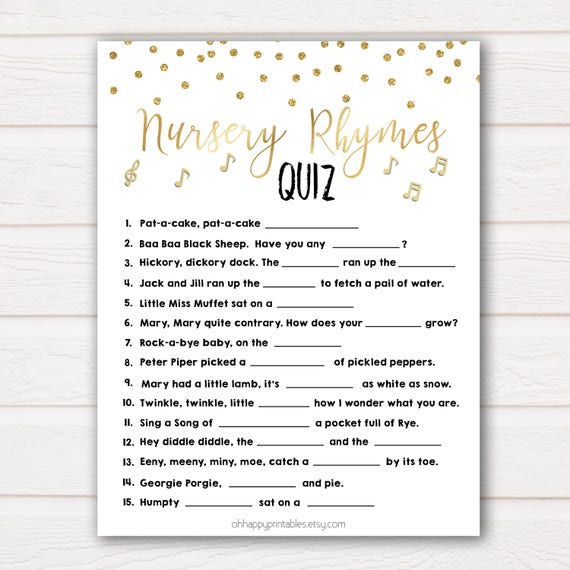 Nursery Rhyme Quiz Baby Shower Games Printable Baby Shower Etsy