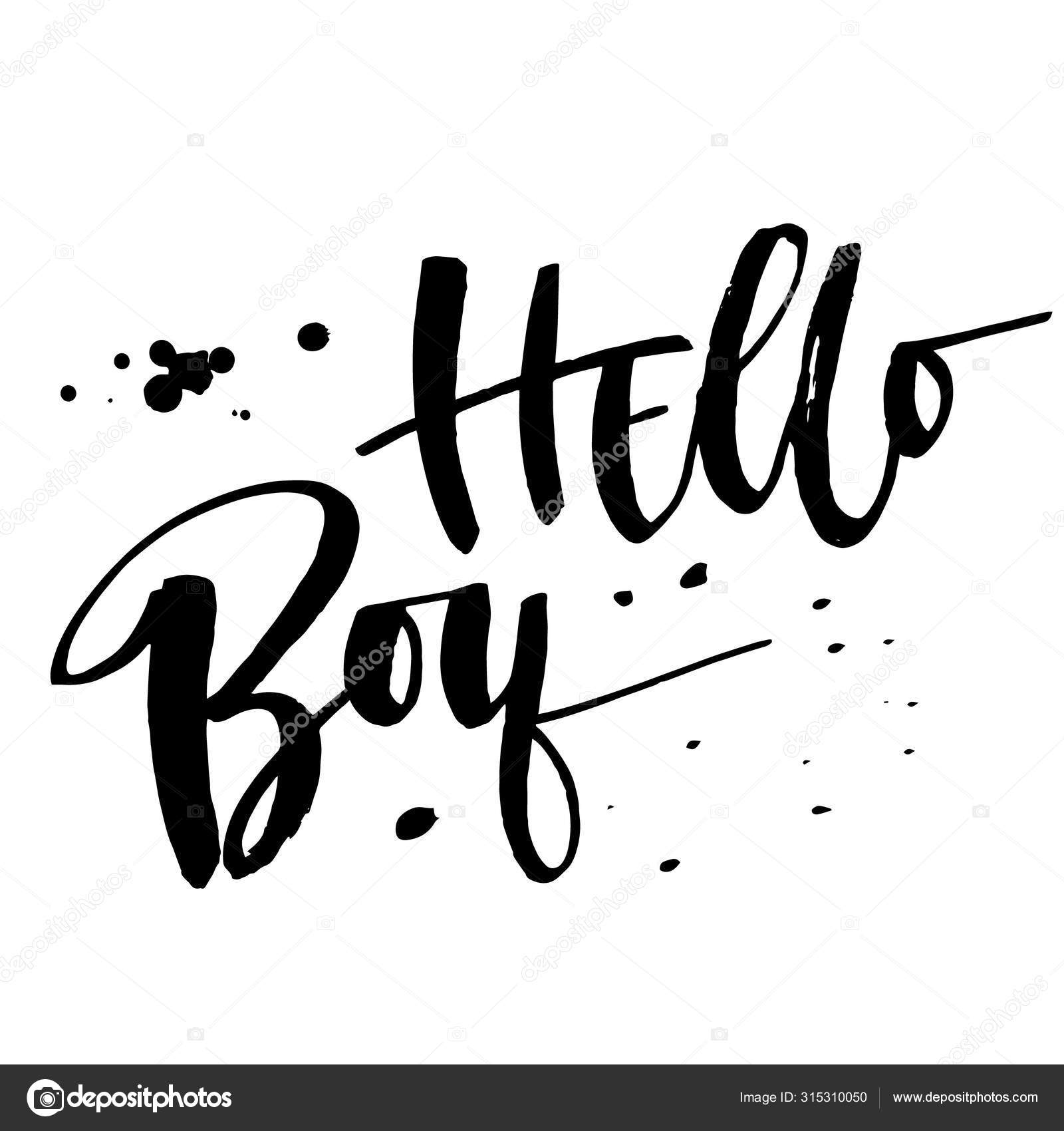 Hello Boy Quote Baby Shower Modern Naive Style Brush Calligraphy