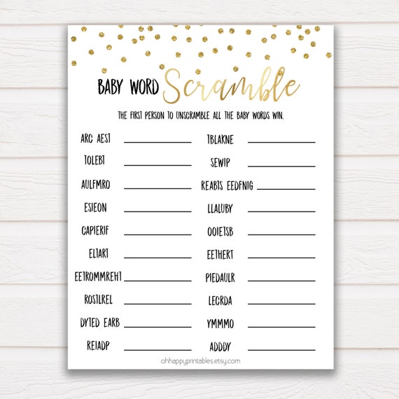 Baby Word Scramble Game Gold Glitter Baby Word Scramble Baby Etsy