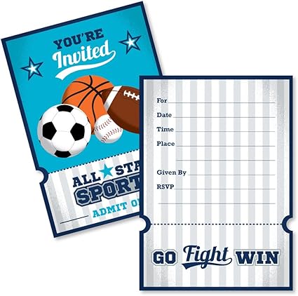 Amazon Com Go Fight Win Sports Shaped Fill In Invitations