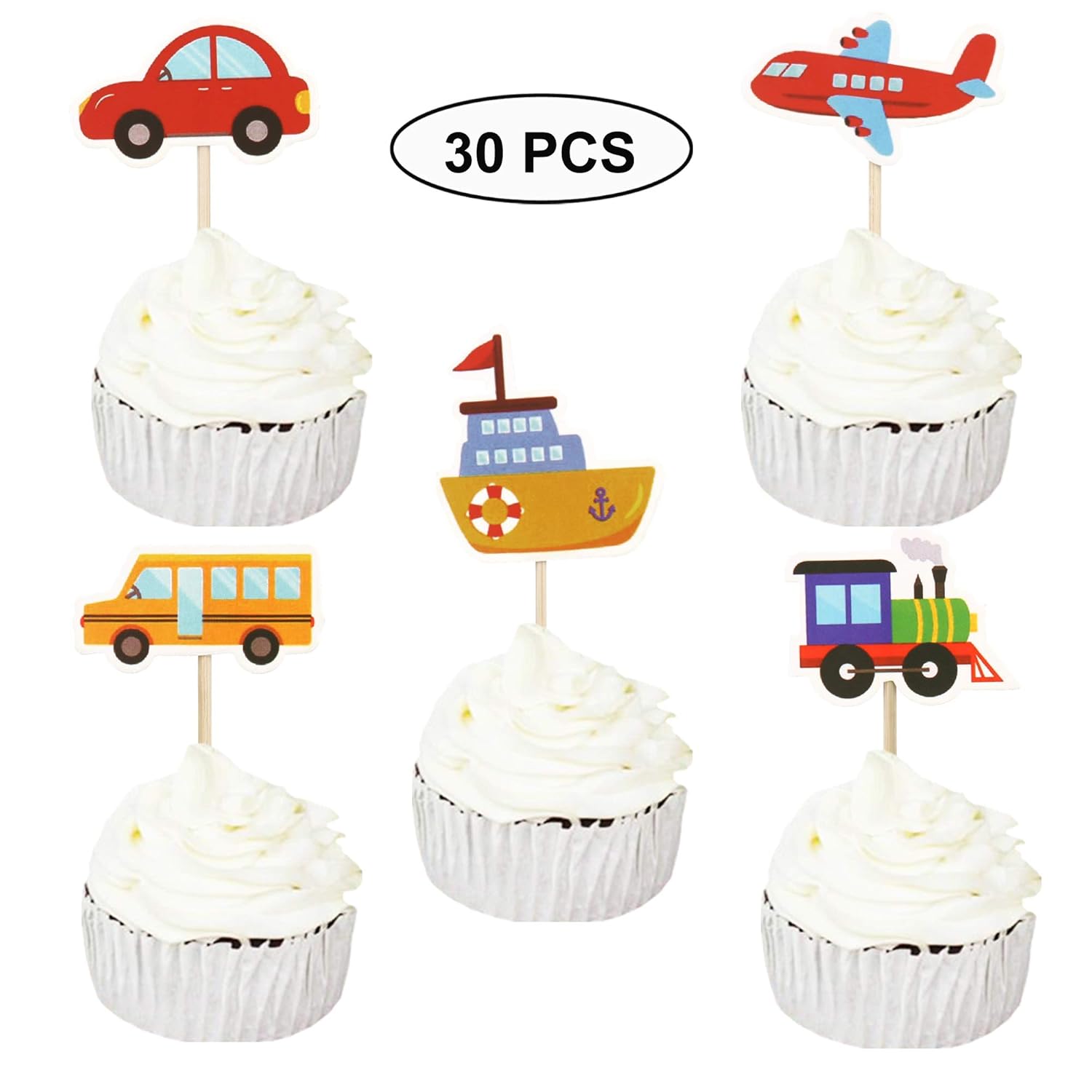 Sumerk 30pcs Transportation Theme Cupcake Toppers Car Truck Ship