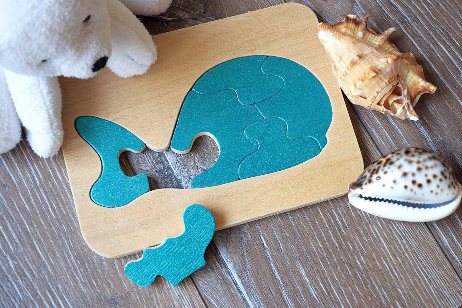 Amazon Com Wood Puzzle Blue Whale Montessori Toy Wooden