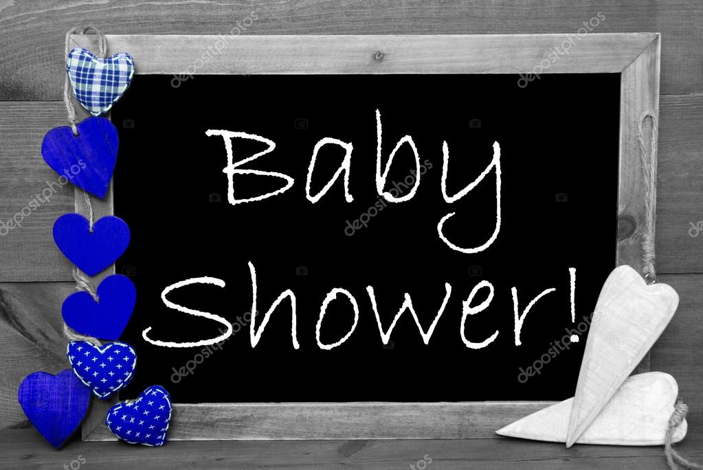 Black And White Blackbord Blue Hearts Baby Shower Stock Photo