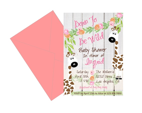 Born To Be Wild Baby Shower Printable Pdf Invitation 5x7 Etsy