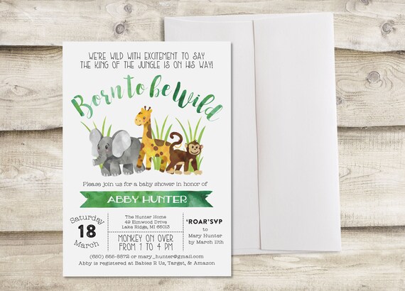 Born To Be Wild Baby Shower Invitation Safari Baby Shower Etsy
