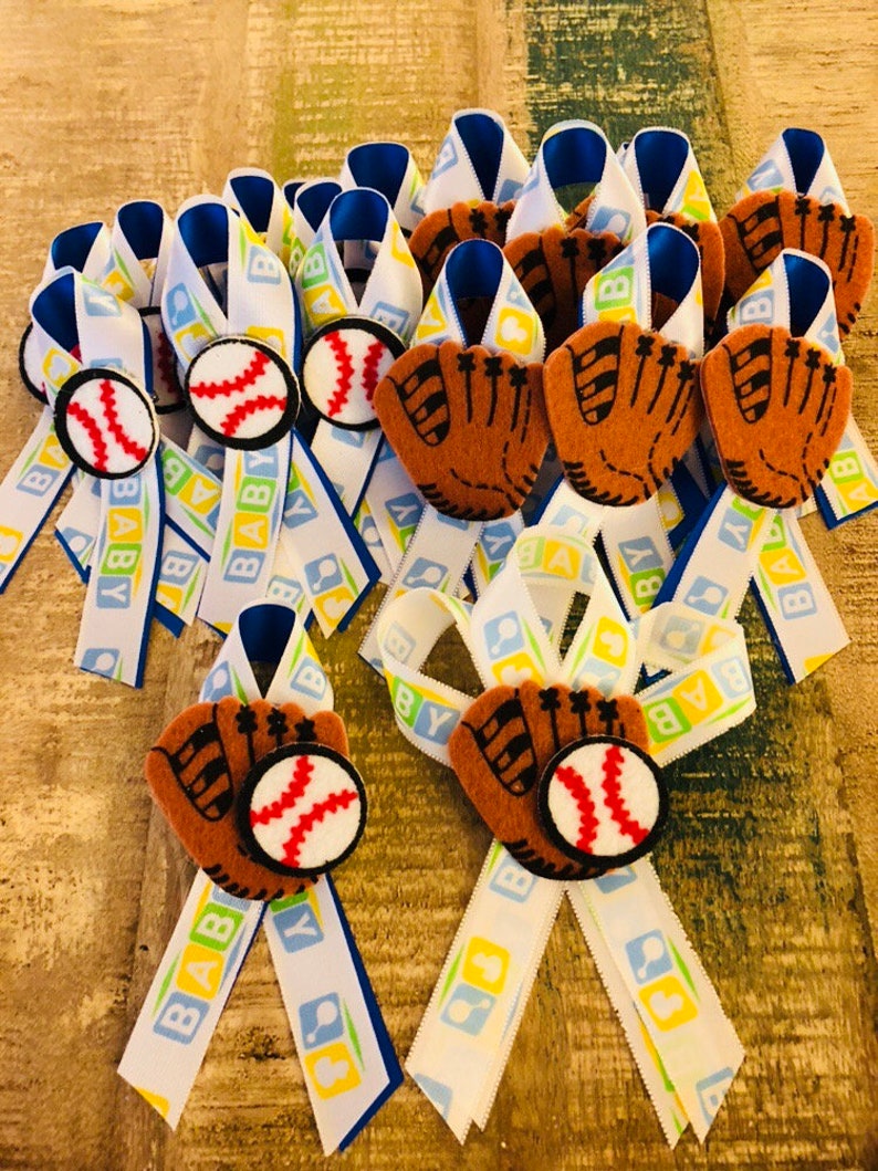 Baseball Themed Baby Shower Pins 1 Mom 1 Dad And 24 Guest Etsy