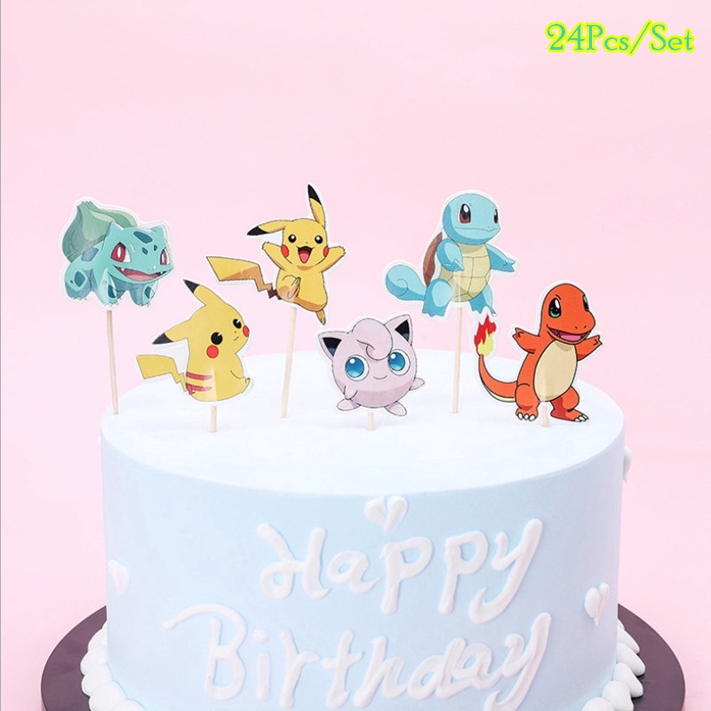 24pcs Pokemon Pikachu Theme Cupcake Cake Toppers For Baby Shower