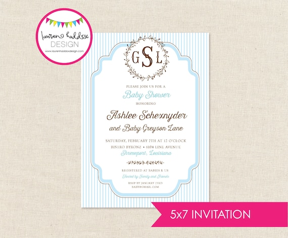 Baby Boy Shower Invitation Navy Blue Crest Monogram Shower