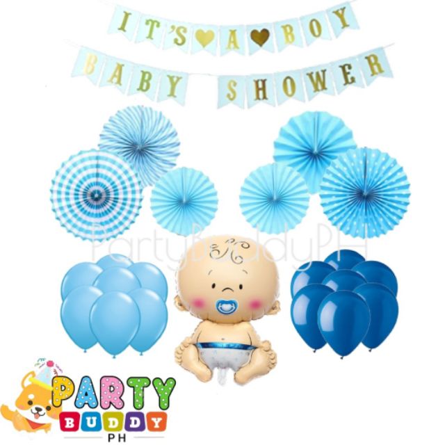 24 Pc It S A Boy Baby Shower Party Fan Balloon Set Shopee