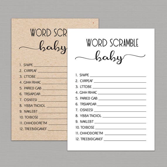Baby Word Scramble Game Word Scramble Baby Shower Game Baby Etsy