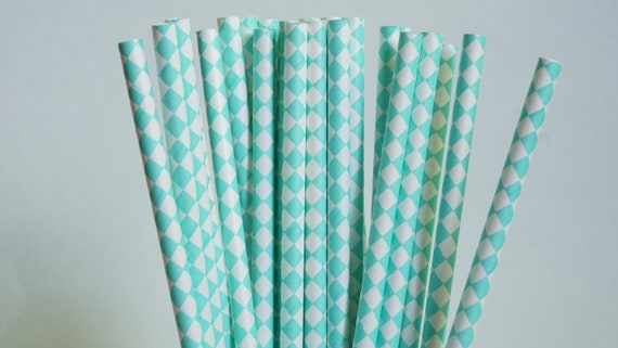 Turquoise Harlequin Party Straws Bridal Shower Straws Etsy