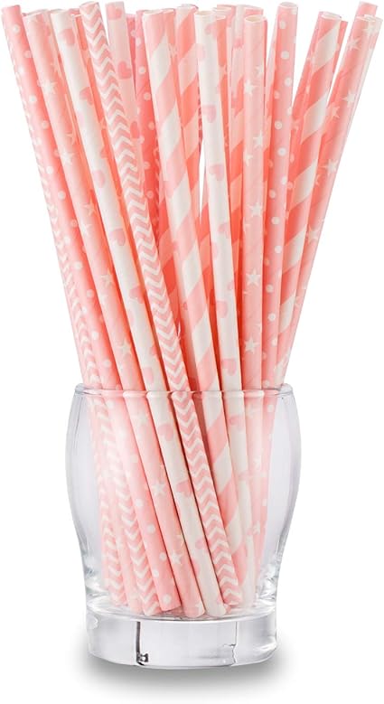 Amazon Com Biodegradable Paper Straws Nuiby Pink Baby Shower