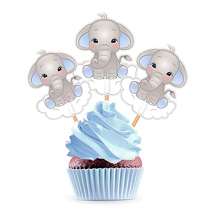 Blue Elephant Cupcake Toppers Cake Picks Boy Baby Shower