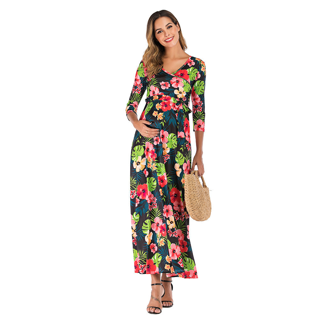 2020 Women Maternity Dresses For Baby Showers Three Quarter Print