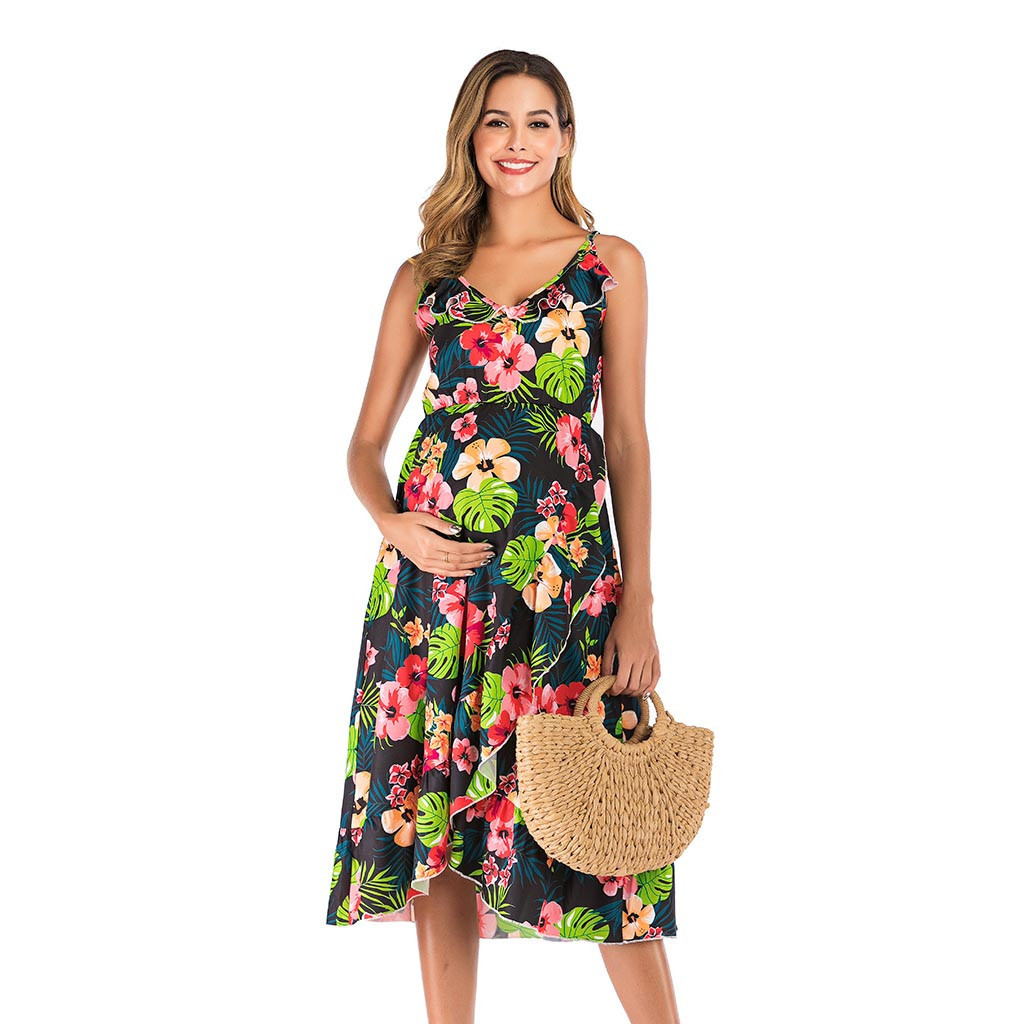 2019 Women Maternity Dresses For Baby Showers Print V Neck Korean