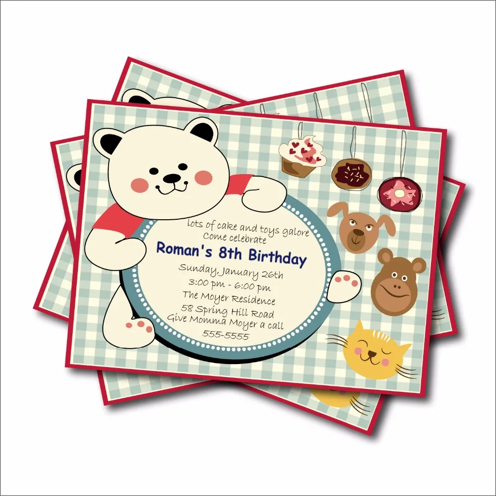 14 Pcs Lot Custom Cute Bear Cupcake Toys Birthday Invitations Baby