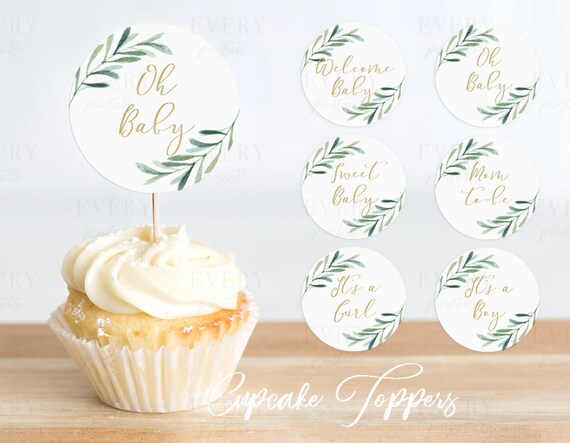 Green Leaf Cupcake Toppers Baby Shower Party Baby Shower Etsy