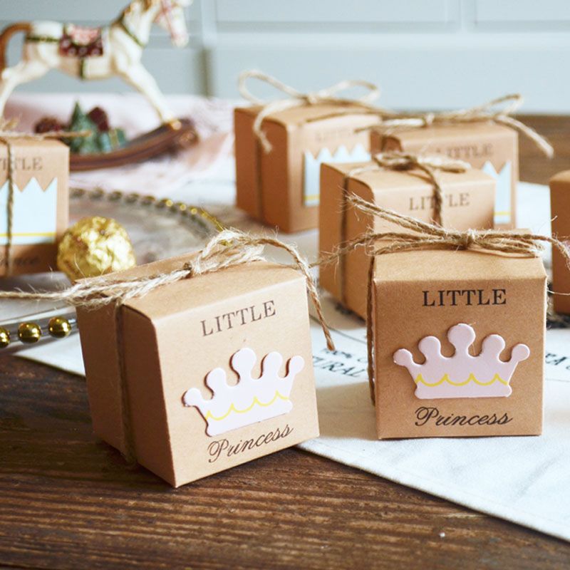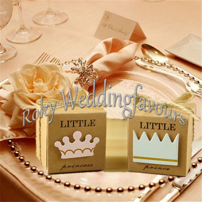 Lovely Crown Little Prince Princess Favor Boxes Baby Shower Party