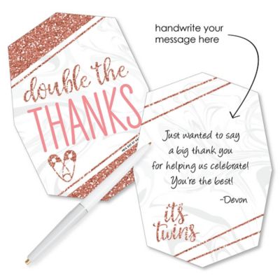 It S Twin Girls Shaped Thank You Cards Pink And Rose Gold