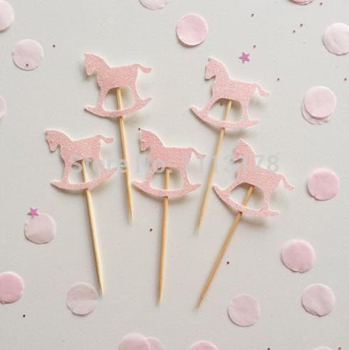 Wholesale Custom Personality Rocking Horse Glitter Cupcake Toppers