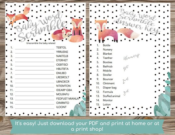 Word Scramble Unscramble The Words Foxes For Baby Shower Etsy