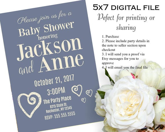 Gray Printable Baby Shower Invitation Gender Neutral Baby Etsy