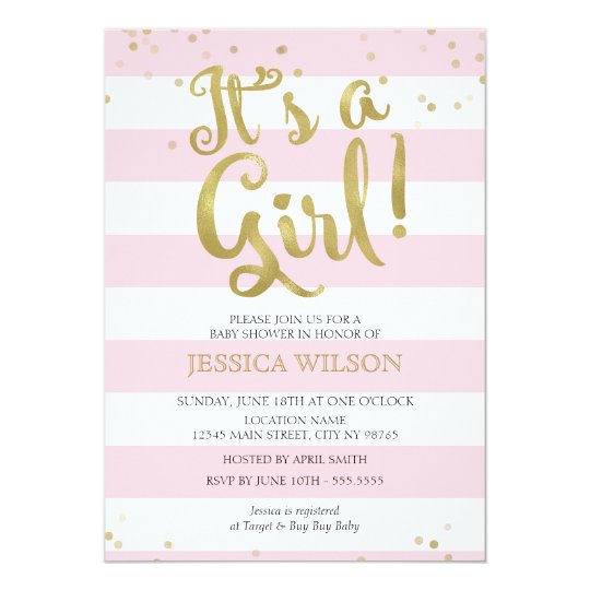 Faux Gold Foil Pink Stripes Baby Shower Its A Girl Invitation