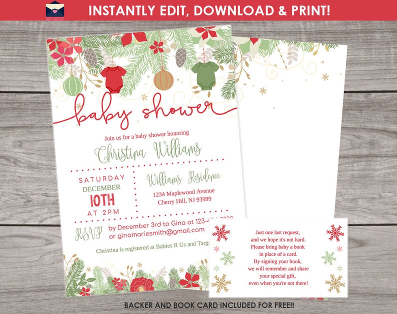 Christmas Baby Shower Invitation Template Edit Yourself With Etsy