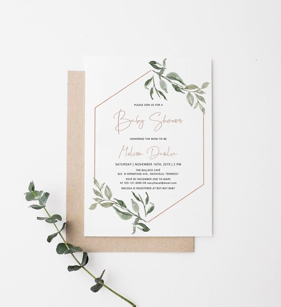 Classic Baby Shower Diy Invitation Set Greenery Themed Instant