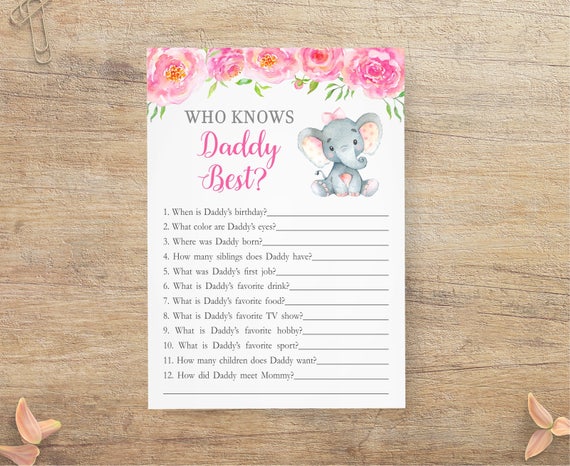 Who Knows Daddy Best Co Ed Baby Shower Games Pink Elephant Etsy