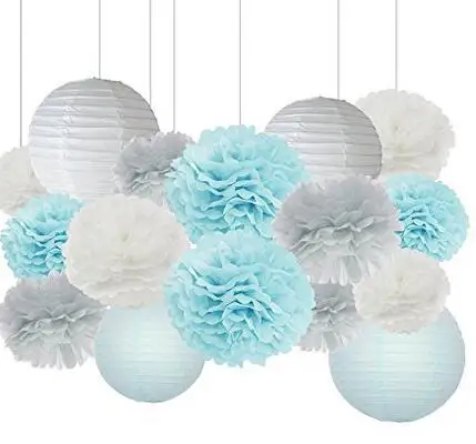 16pcs Boy Baby Shower Decorations Baby Blue Grey White Mixed