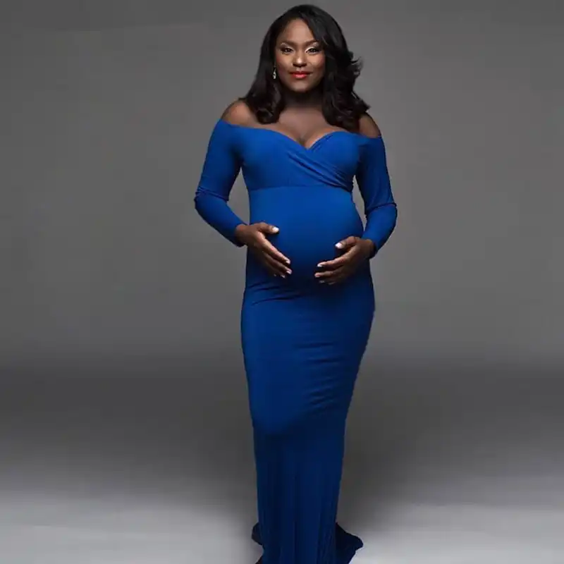 Off Shoulder Woman Maternity Dress Long Gown Baby Shower Costume